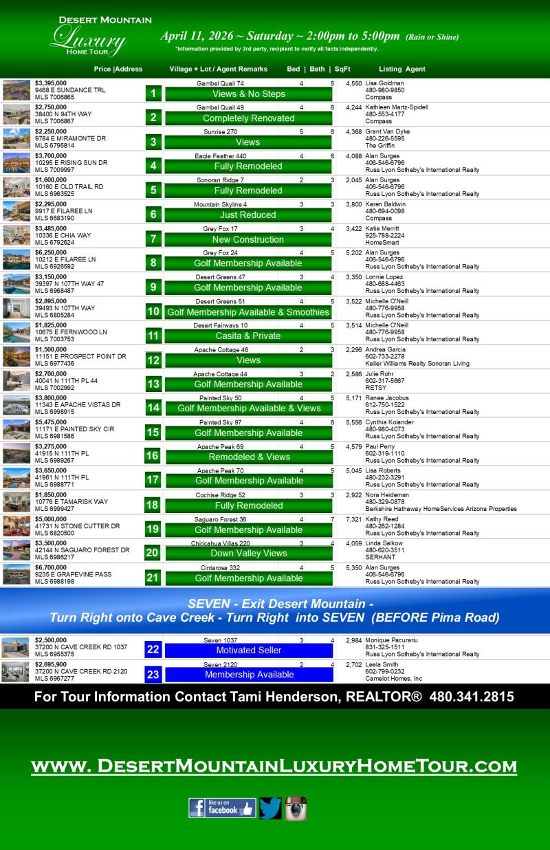 Scroll down to bottom of page to view the information on each individual home on this week's tour.