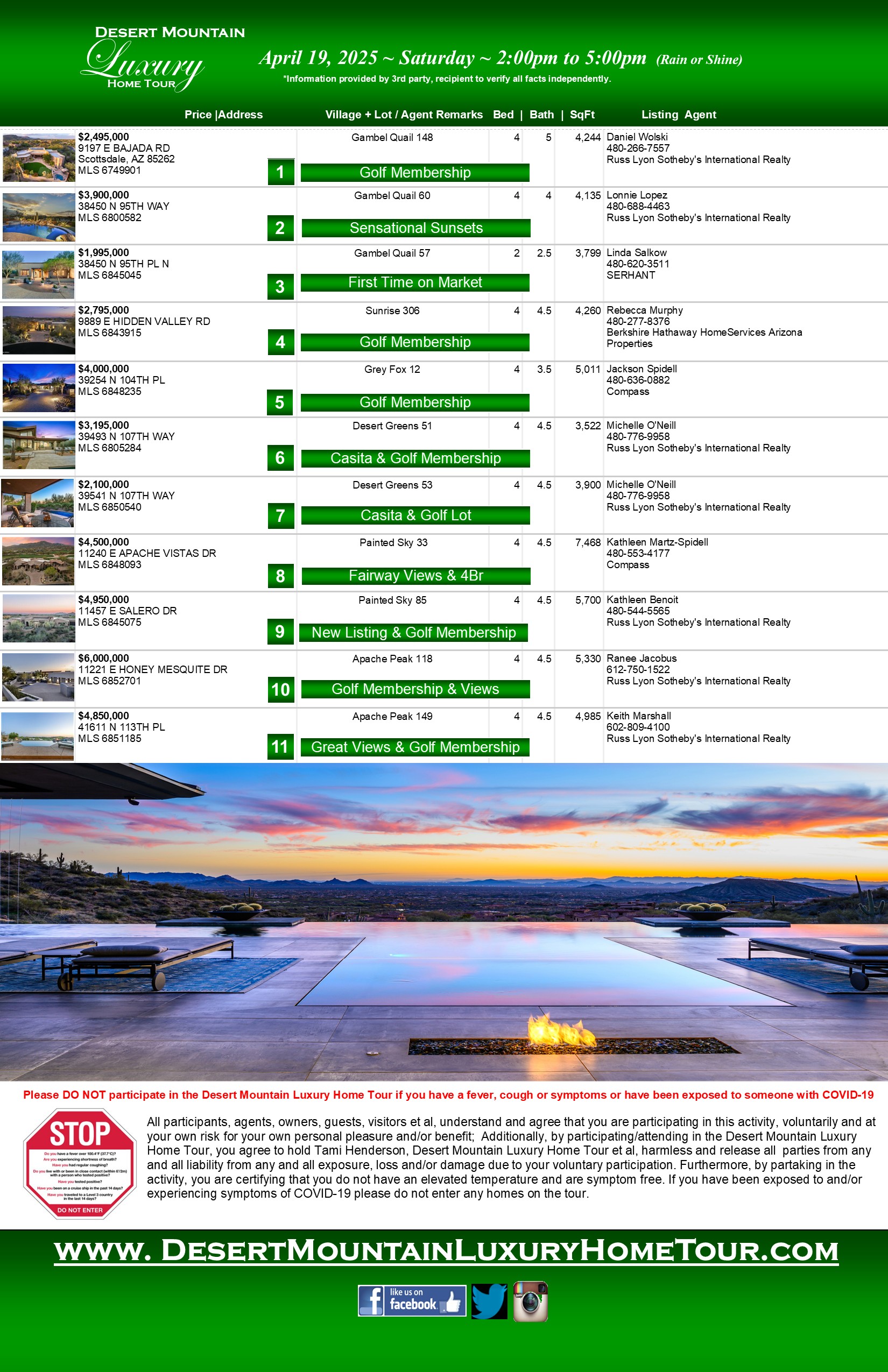 Scroll down to bottom of page to view the information on each individual home on this week's tour.