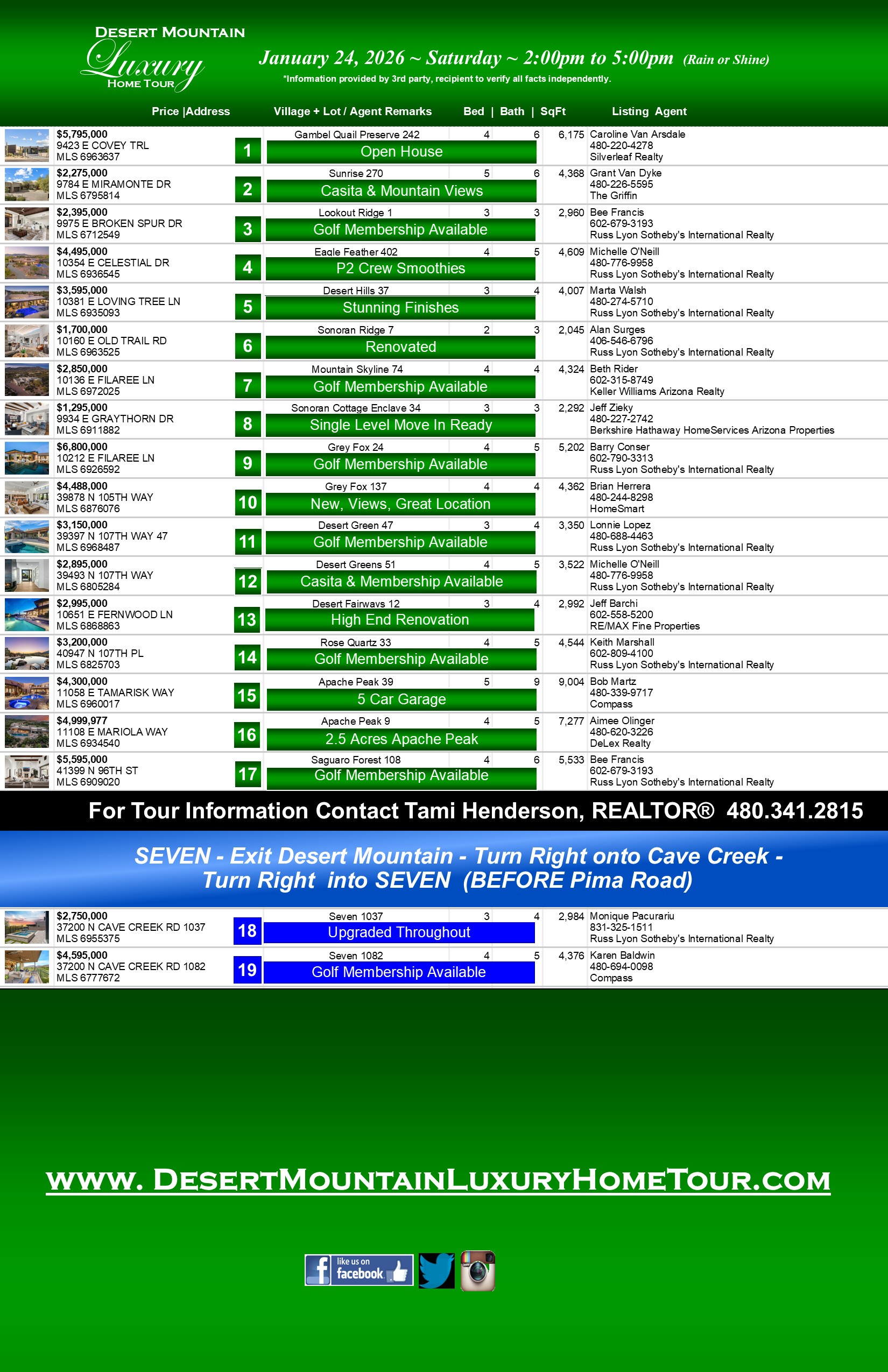 Scroll down to bottom of page to view the information on each individual home on this week's tour.