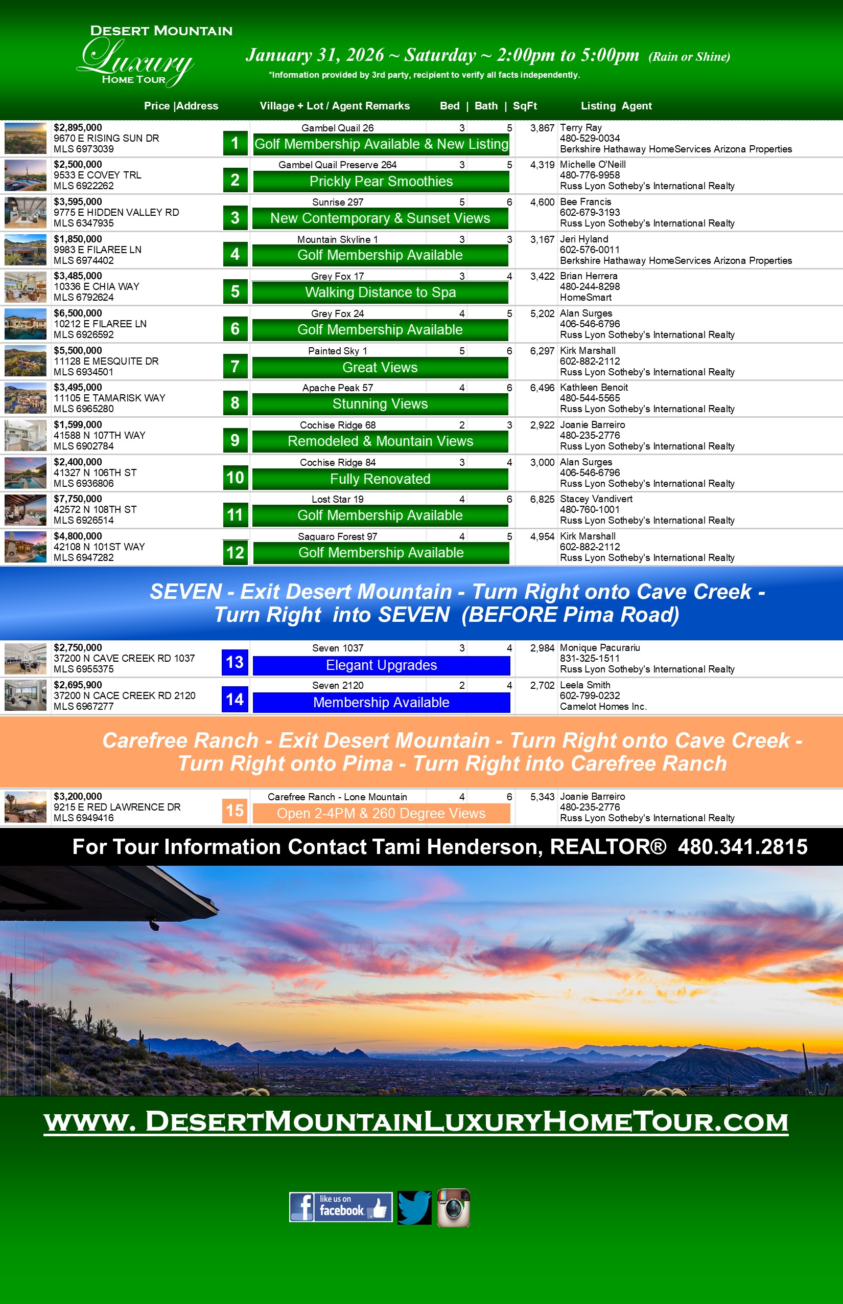 Scroll down to bottom of page to view the information on each individual home on this week's tour.
