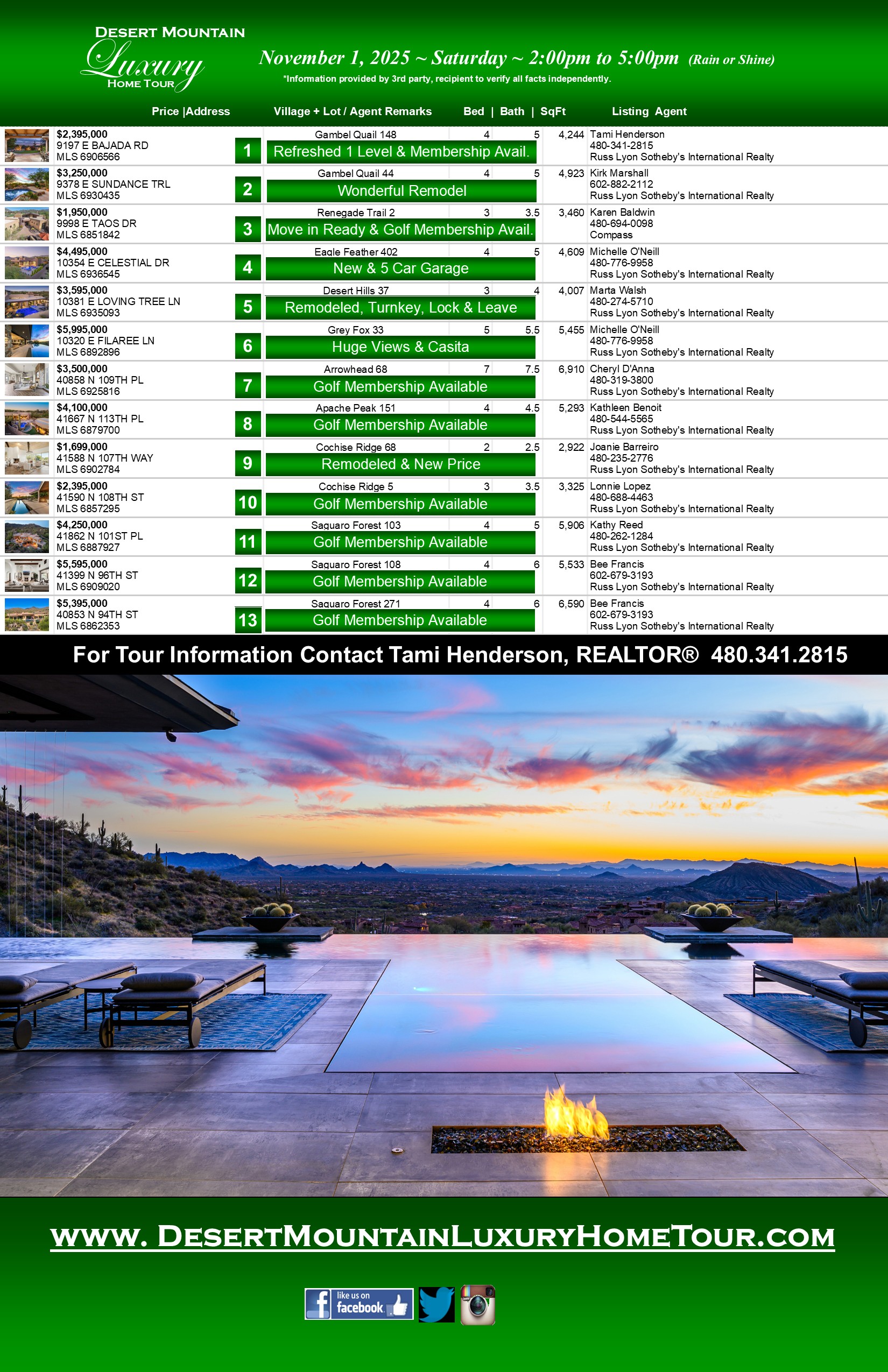 Scroll down to bottom of page to view the information on each individual home on this week's tour.