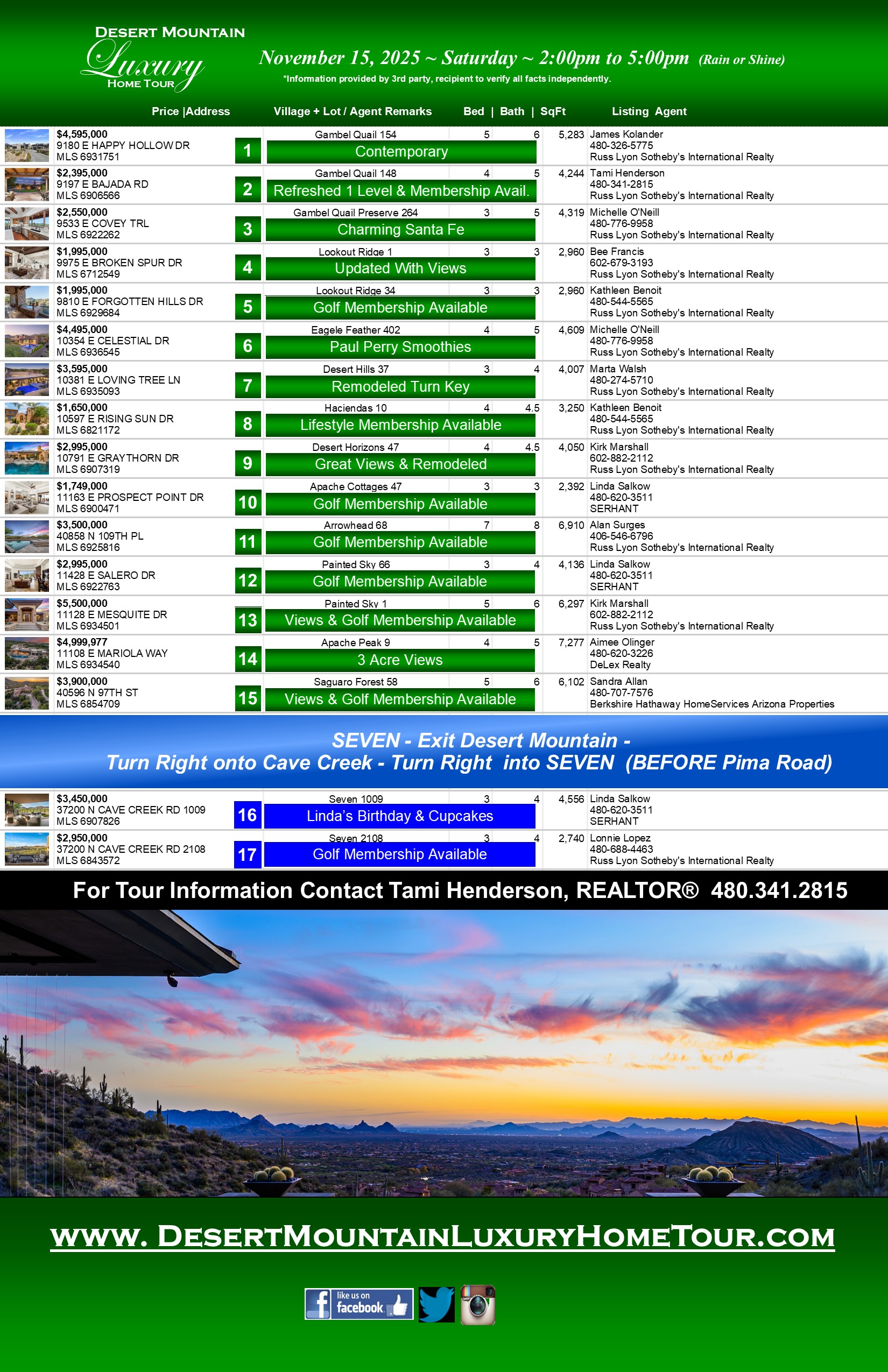 Scroll down to bottom of page to view the information on each individual home on this week's tour.