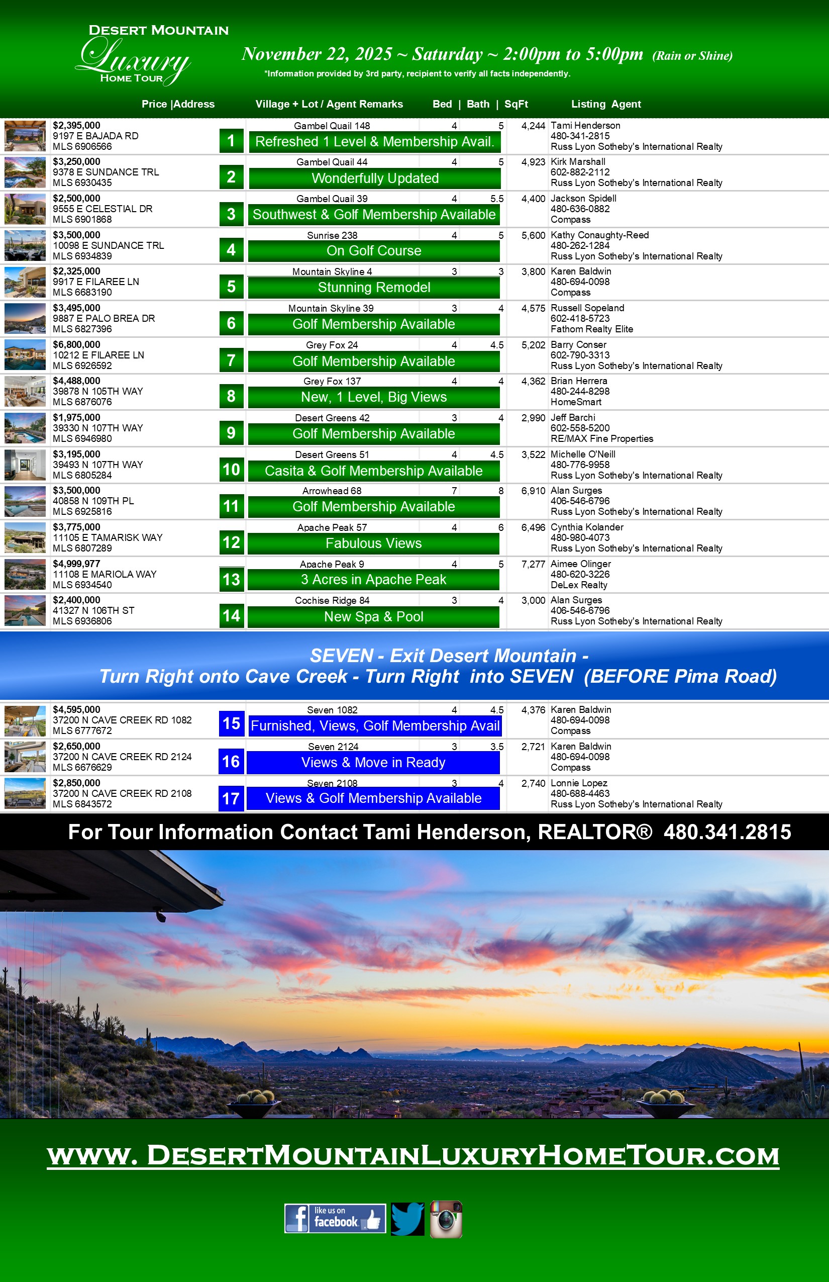 Scroll down to bottom of page to view the information on each individual home on this week's tour.